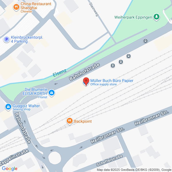 MÜLLER Buch Büro Papier ist Ihr Fachgeschäft für Schreibwaren, Schulbedarf, Bürobedarf, Bücher und Papier. Seit 1989 stehen wir für Kompetenz, Service und persönliche Beratung. Neben aktueller Fach- und Schulliteratur finden Sie bei uns auch eine große Auswahl an Schulranzen in Eppingen. Unsere Filiale bietet zudem einen Postpoint mit Briefmarkenverkauf sowie eine DHL-Paketstation. Entdecken Sie Qualität und Vielfalt bei Schreibwaren in Eppingen.